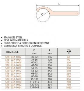 Stainless Hook Wrench With Pin