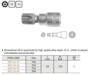 3/8″ Dr.Bit Socket Tamper Proof Torx