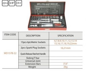 22pcs 3/8″ Dr.Socket Wrench Set