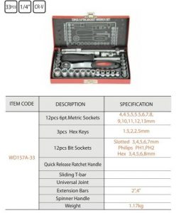 HomeSteel tools33pcs 1/4″ Dr.Socket Wrench Set