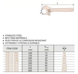 Stainless Wrench, Adjustable