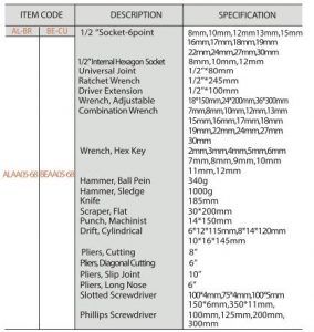 Axe Hammer Hook Pliers Ratchet Ratchet Wrench Screwdriver Socket Socket Sets Valve key Wrench