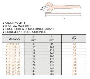 Stainless Wrench, Single Open End